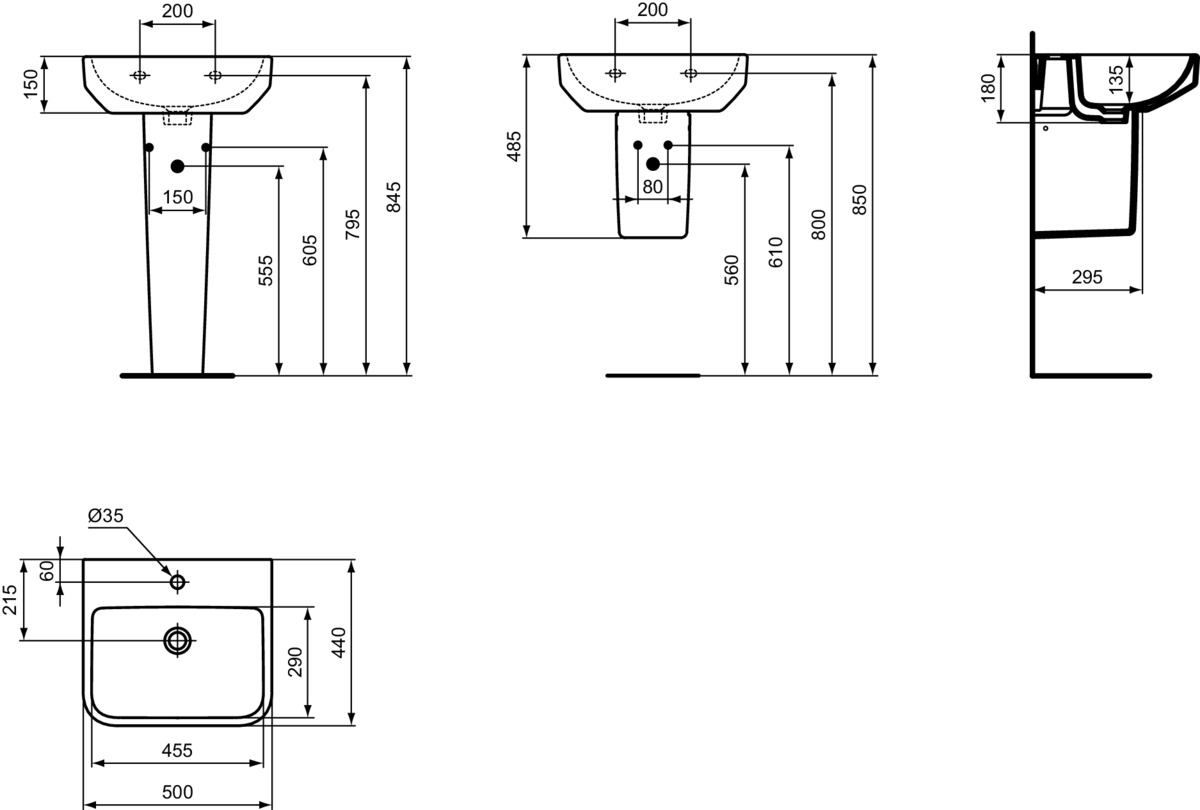 Wastafel 500x440x180mm m. 1 kraangat z. overl gl wit sg i.life b Ideal Standard